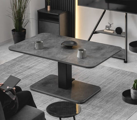 昇降式 ガス圧昇降式テーブル 120×75cm 1本脚 シンプル 昇降テーブル ダイニングテーブル センターテーブル ローテーブル リビングテーブル デスク 高さ調節 食卓テーブル