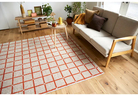 日本製 ラグ 130×185cm 滑り止め オセロ チェック柄 カラーライン タフトラグ ブルー オレンジ ホワイト 国産 スミノエ Suminoe 北欧 モダン シンプル おしゃれ(代引不可)
