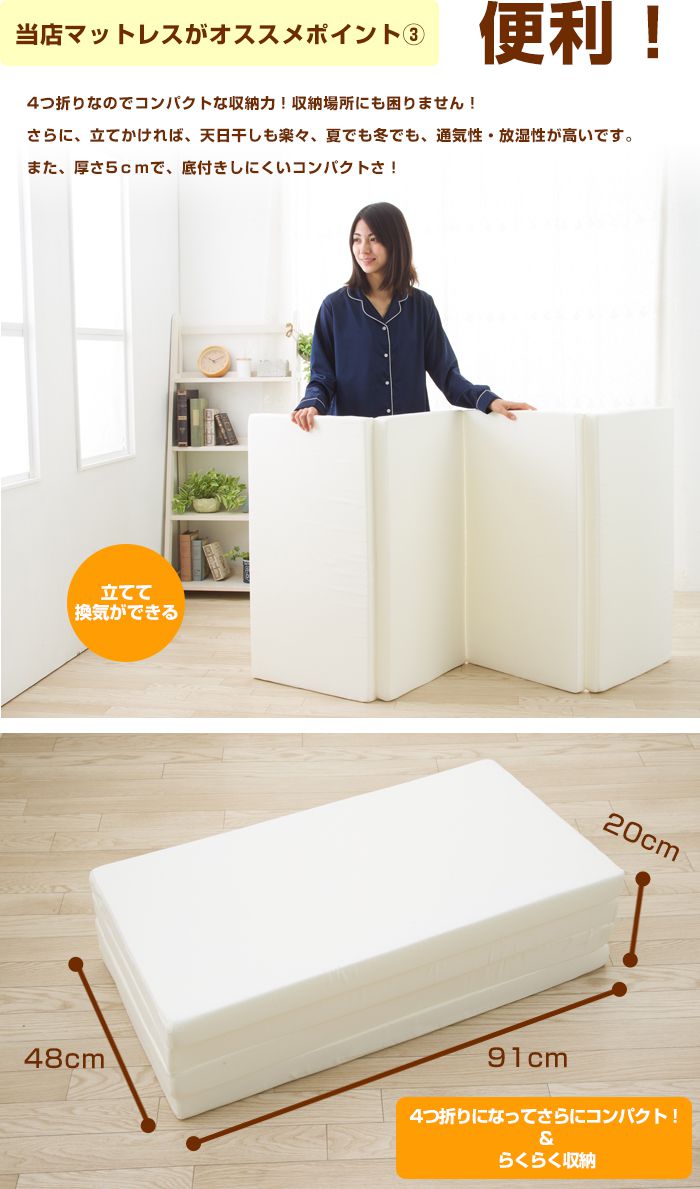 日本製 四つ折り バランス マットレス シングル 4つ折り 腰硬め 厚さ5cm 95ニュートン ウレタンマットレス 軽量 中反発 腰部高反発(代引不可)