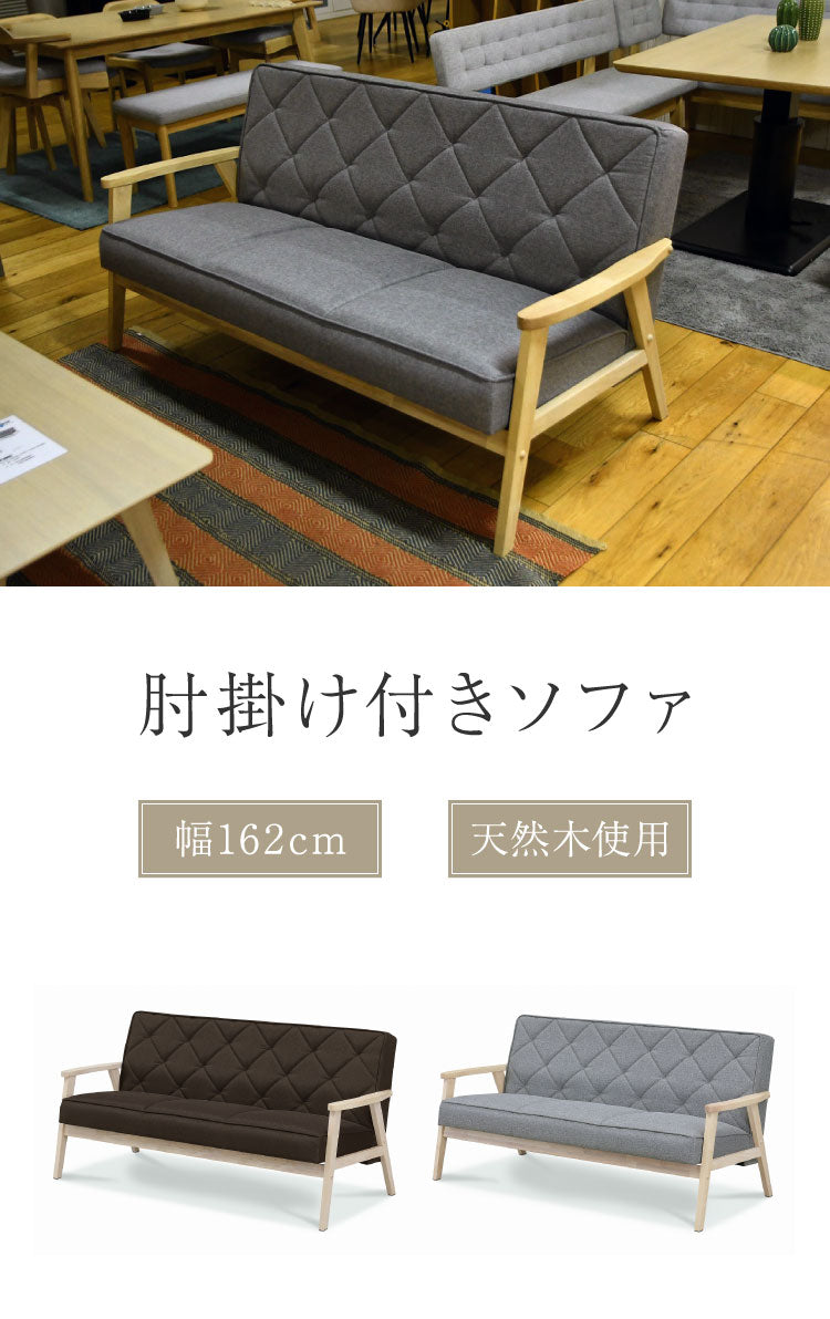 ソファ 3人掛け 幅162cm 肘掛け付き 脚付き リビングソファ 木肘 木脚 ローソファ フロアソファ リビング ダイニング ファブリック 天然木 三人掛け 3P 肘掛け(代引不可)