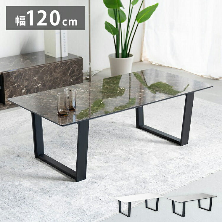 センターテーブル 幅120cm ローテーブル リビングテーブル コーヒーテーブル ソファテーブル ローデスク モダン 北欧 大理石柄 ブラック ホワイト(代引不可)