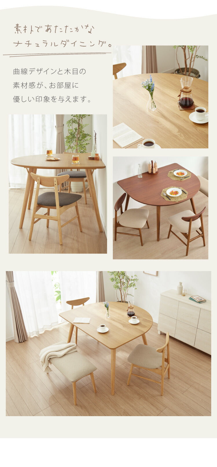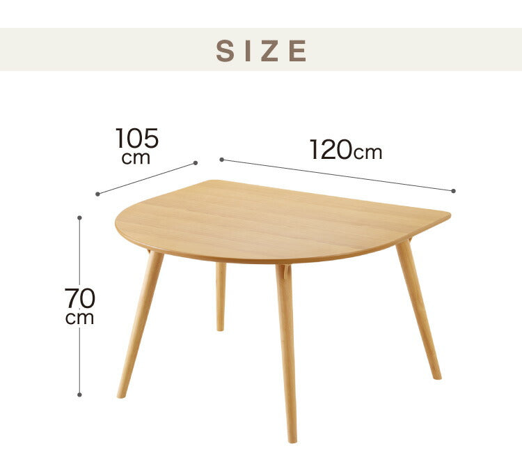 半円型のダイニングテーブル。オーク、ウォルナットの突板を天板に使用し高級感があります。