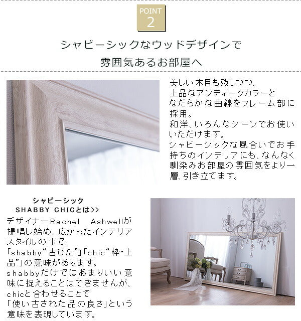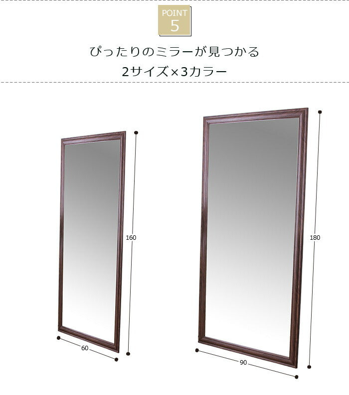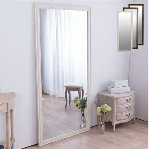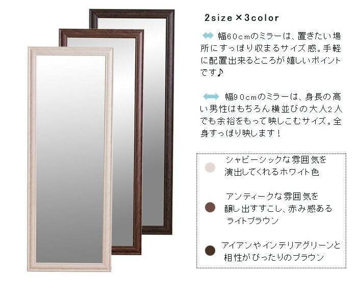 鏡 ミラー 全身 姿見 アンティーク調大型ミラーW90 ホワイト ブラウン ライトブラウン 幅90ビッグミラー 全身鏡 壁掛け(代引不可)