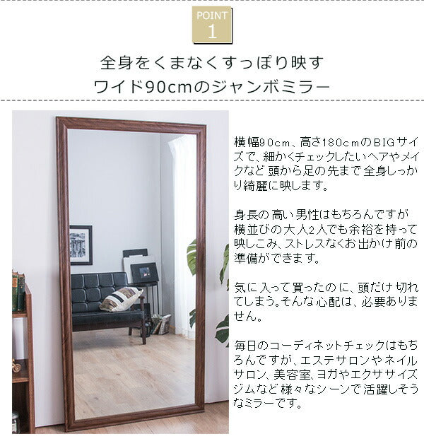 商品説明 ○全身をくまなくすっぽり映すワイド90cmのジャンボミラー
