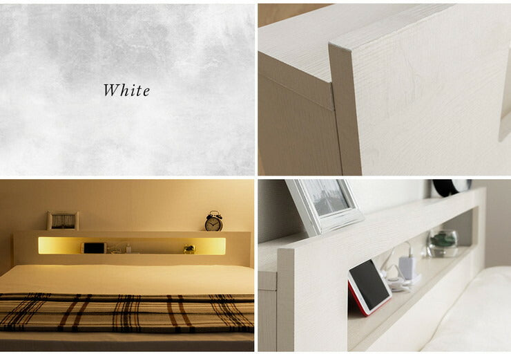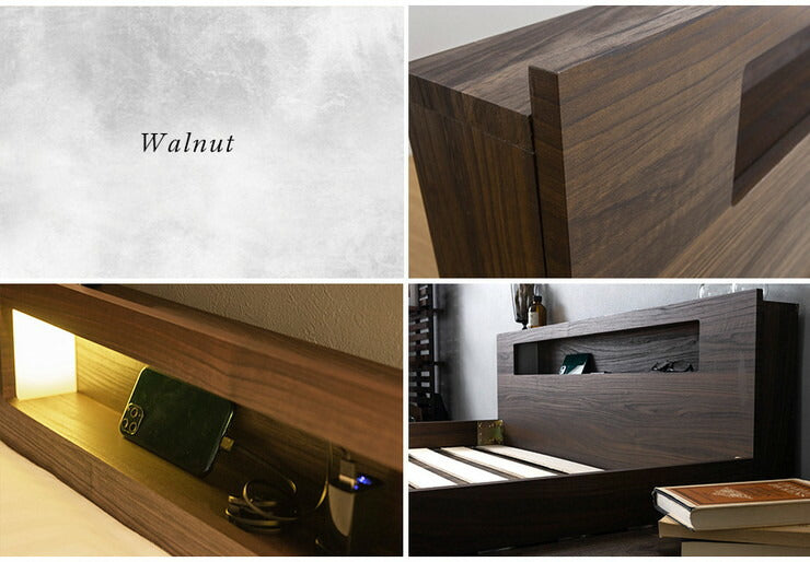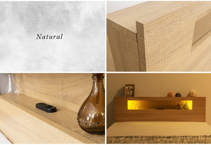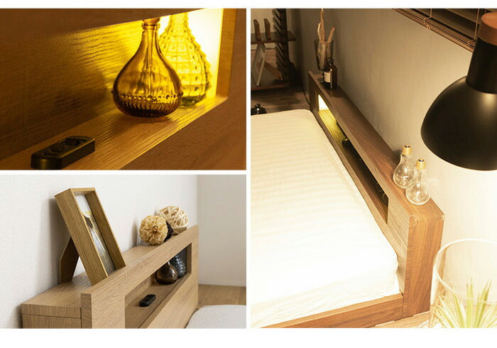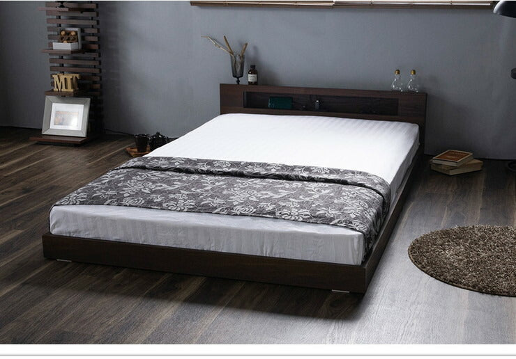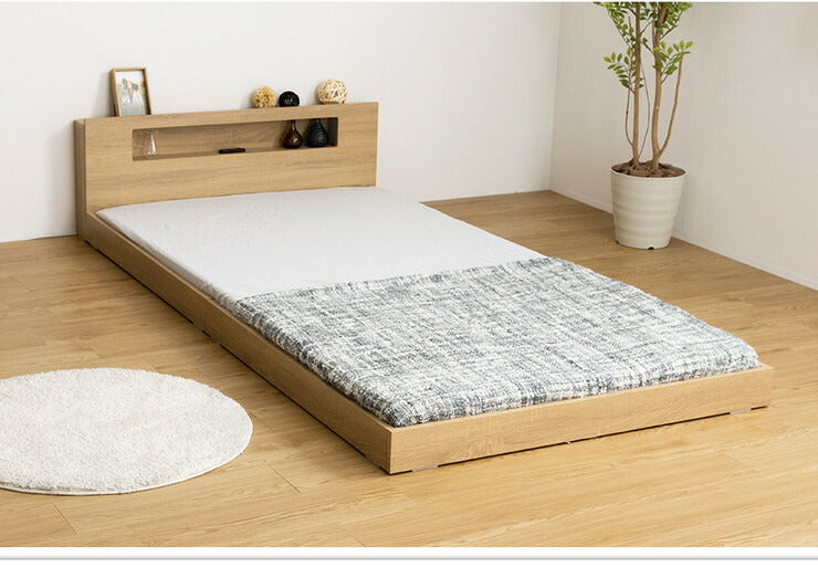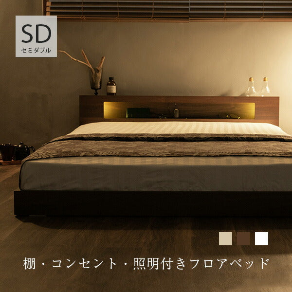 棚・コンセント・照明付きフロアベッド セミダブル タクナ 照明付き すのこ板目仕様 ヘッドボード付き ローベッド フロアベッド(代引不可)