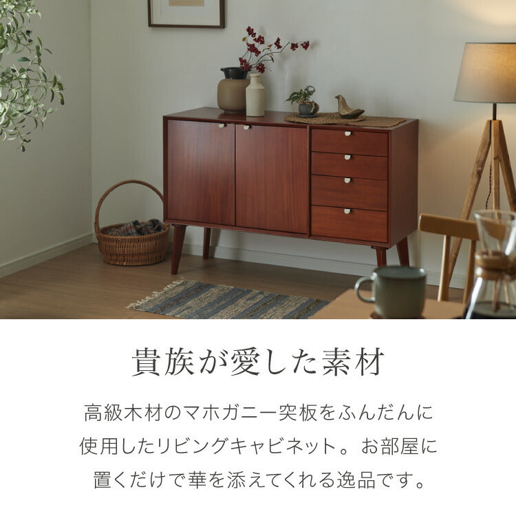 キャビネット 幅110cm 北欧 ヴィンテージ 天然木 マホガニー 完成品 サイドボード リビングボード 収納家具 お洒落 モダン ブラウン 木製 フリーボード ローボード 高級感 AVA アヴァ(代引不可)