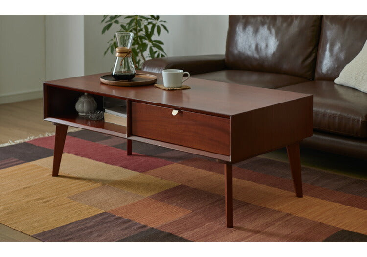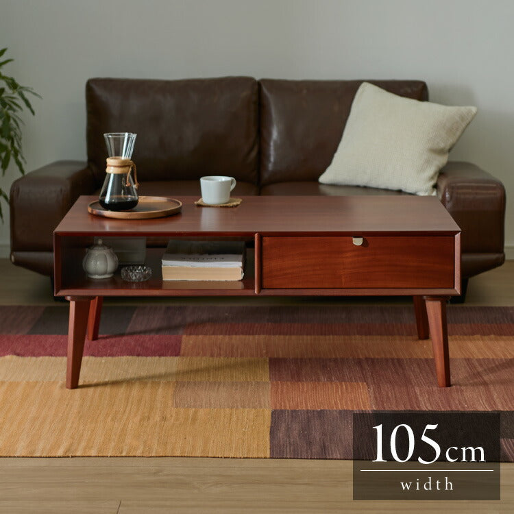 リビングテーブル 幅105cm 北欧 ヴィンテージ 天然木 マホガニー 完成品 ローテーブル センターテーブル 収納家具 おしゃれ モダン 木製 引き出し付き オープン収納 高級感 AVA アヴァ(代引不可)