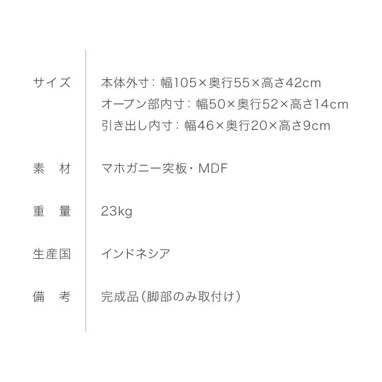 引き出し内寸(2杯共通):幅46×奥行20×高さ9cm
