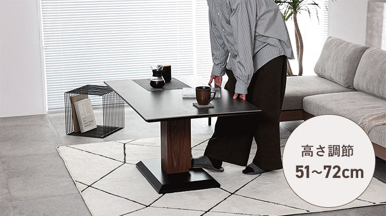 デザイン性と機能性を持ち合わせた昇降テーブル。ガス圧昇降式で51cm~72cmの高さ調整可能。