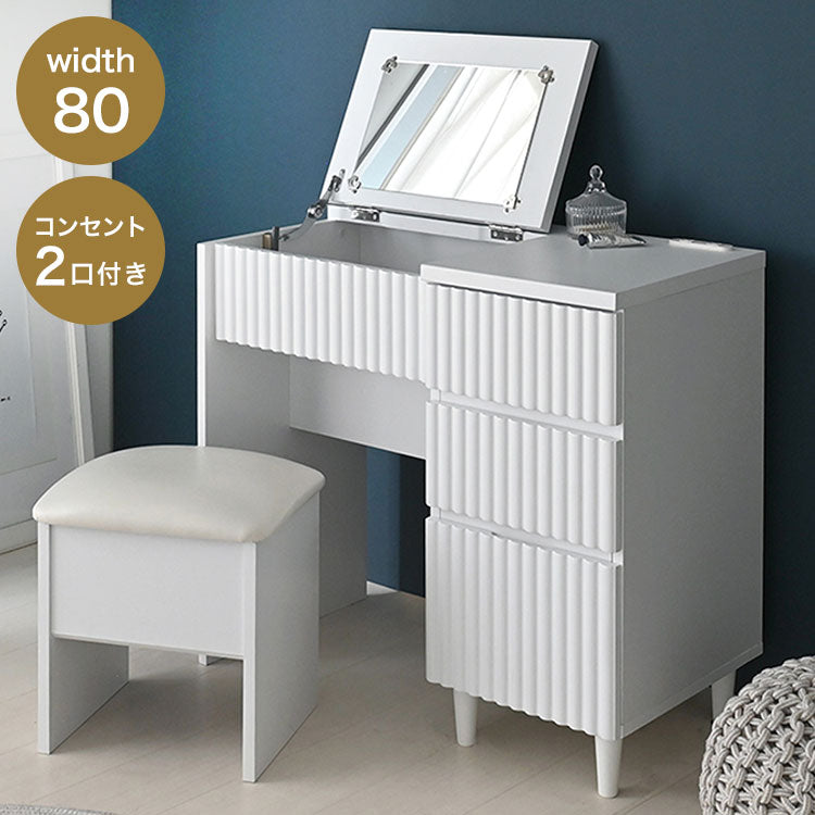 アランドレッサーALN70-80D WH ホワイト ドレッサー コンセント付き 化粧台 椅子 スツール付き 寝室 化粧テーブル コスメ台 デスク ドレッサーデスク 鏡台 椅子付き