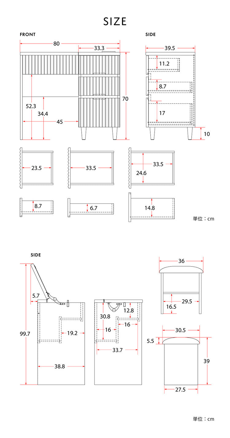 【サイズ】(本体)W800×D395×H700mm(スツール)W360×D305×H390mm