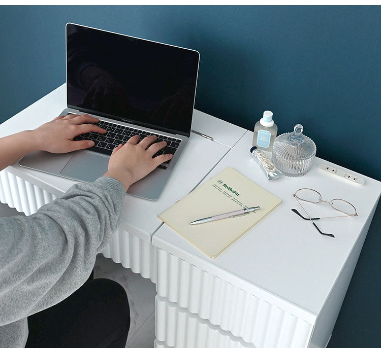 〇天板を閉じるとデスクに早変わり!1台で2役をこなしてくれる、優秀なドレッサーです。」