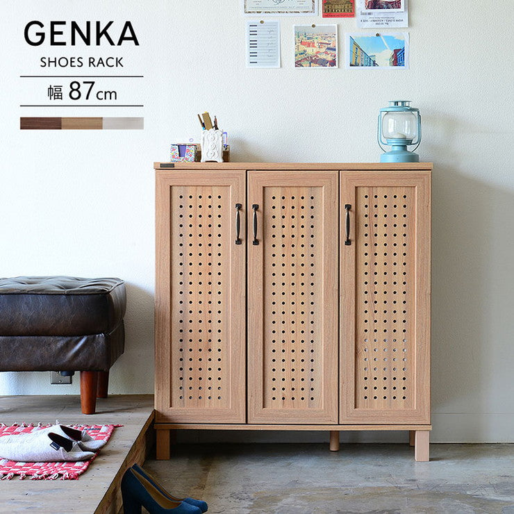 シューズストッカー 90cm幅 シューズボックス ホワイト ナチュラル ブラウン 下駄箱 玄関収納 北欧 GENKA ジェンカ 組立品(代引不可)