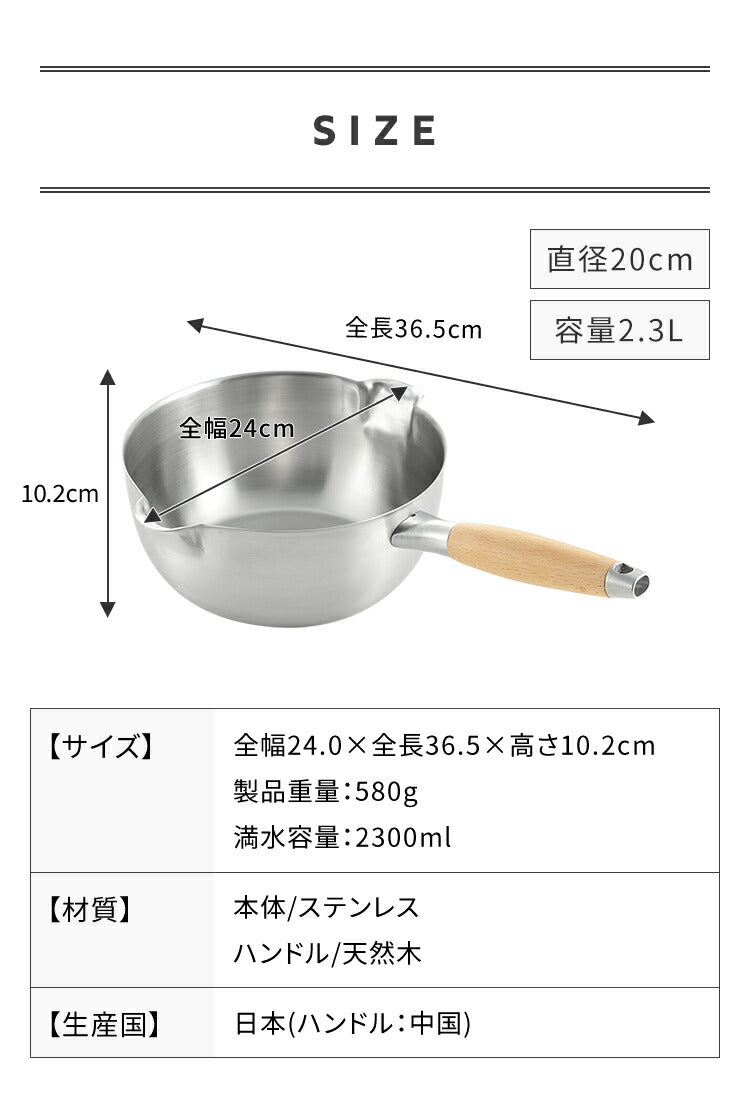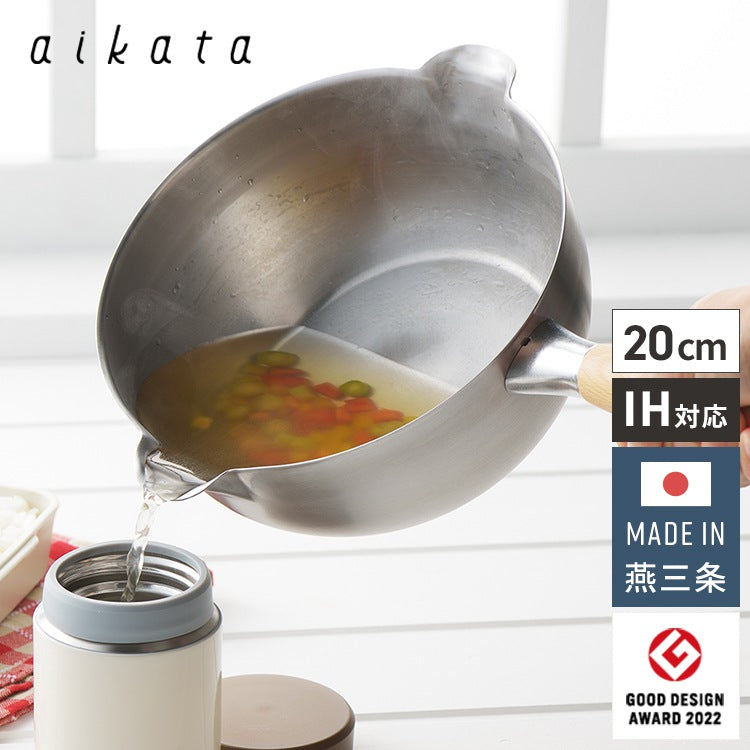 ヨシカワ 日本製 aikata アイカタ 両口ステンレス雪平鍋 20cm 片手鍋 IH対応 ガス火OK 燕三条 Yoshikawa プレゼント ギフト 贈り物 料理 調理用品