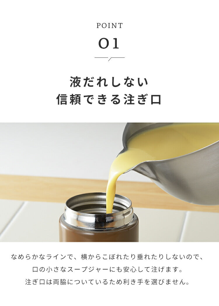 とろみのあるミネストローネも、細かい具ならおたま要らずでスープポットに移せます。スープをお弁当にする方の毎朝を、もっと快適にしてくれます。