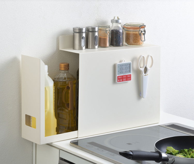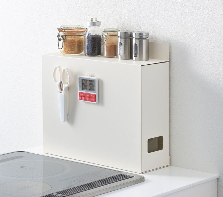 サイドカバーはマグネット対応。お好みでキッチンタイマーやマグネット式の収納グッズを取り付けてお使いいただけます。