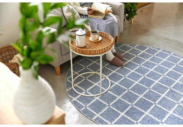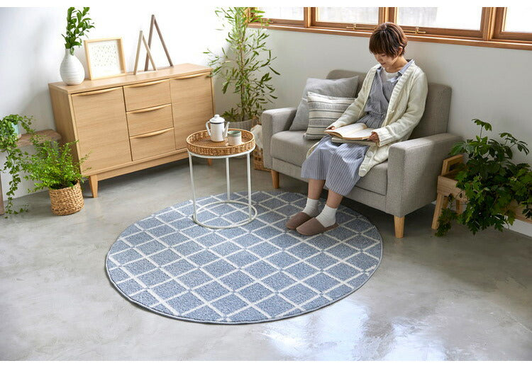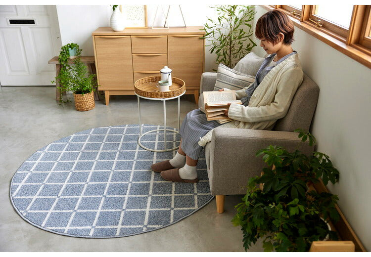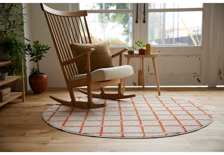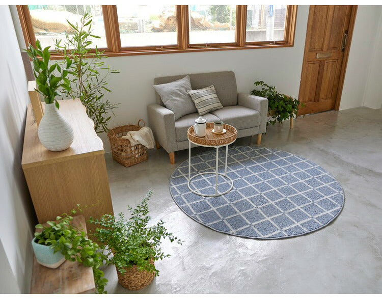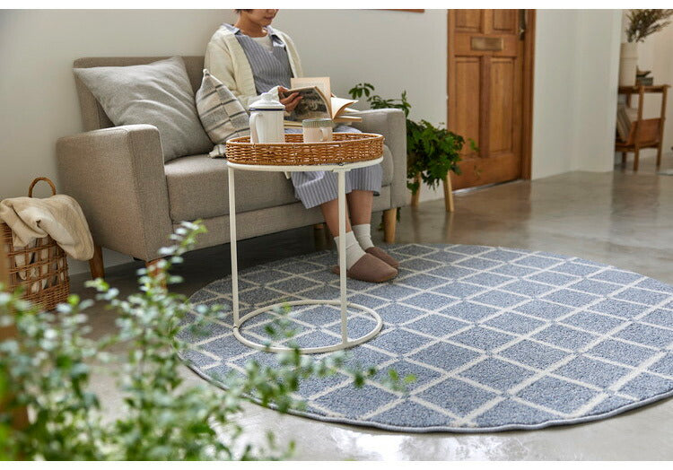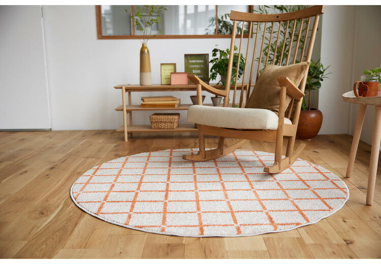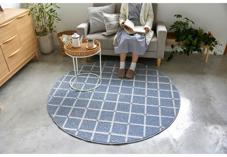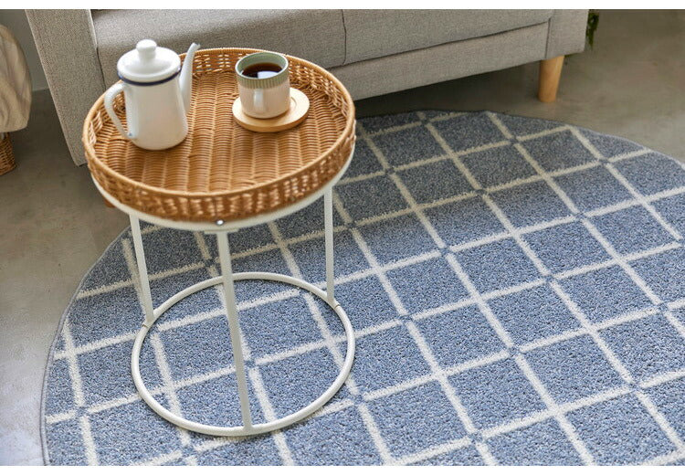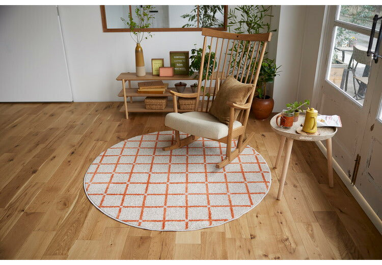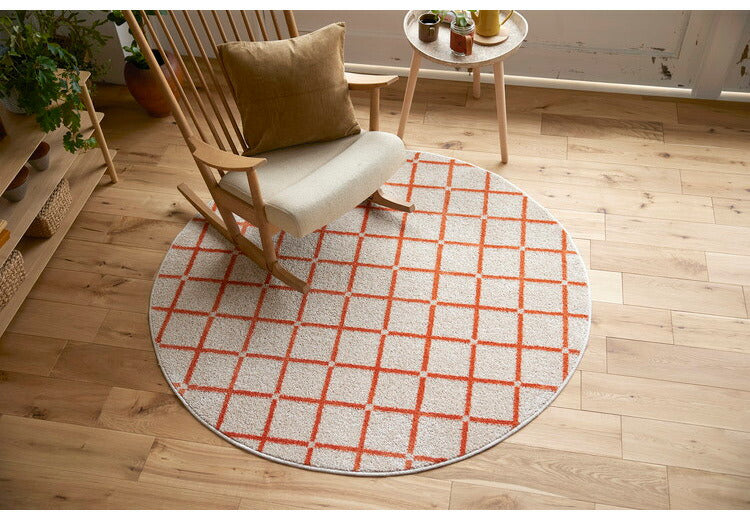 日本製 ラグ 円形 直径150cm 丸 滑り止め オセロ チェック柄 カラーライン タフトラグ ブルー オレンジ ホワイト 国産 スミノエ Suminoe 北欧 モダン シンプル おしゃれ(代引不可)