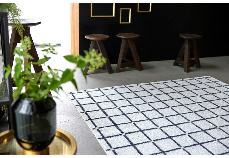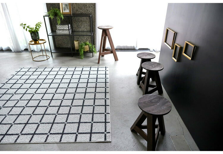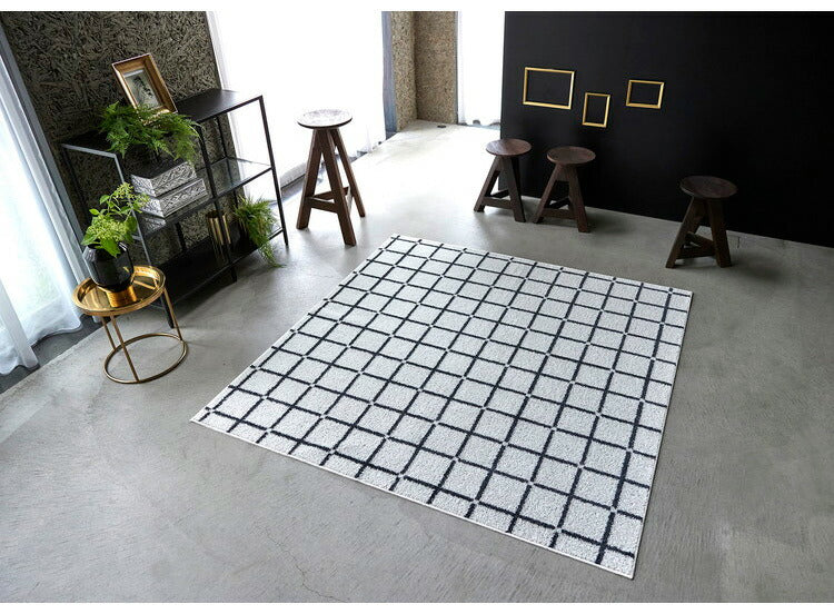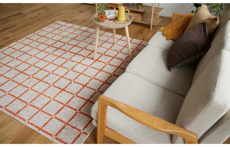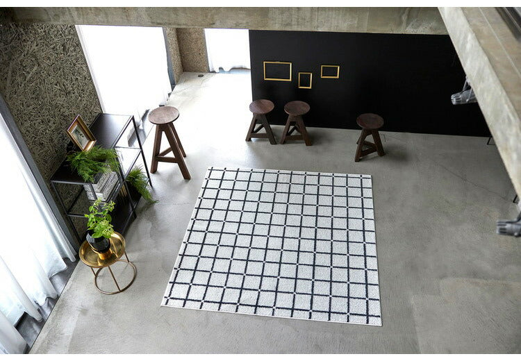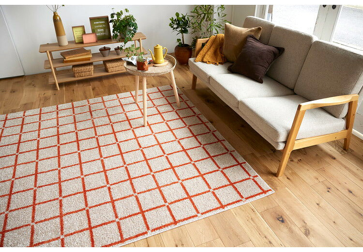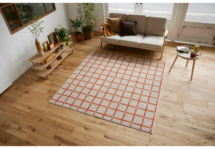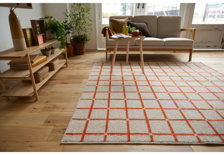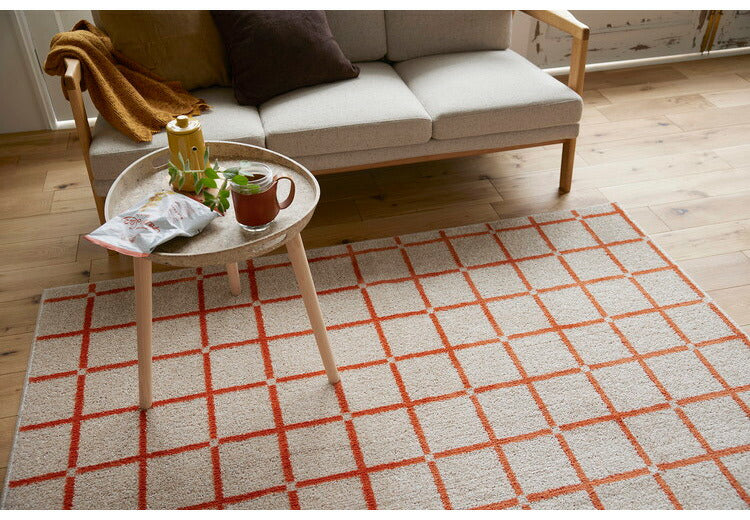 日本製 ラグ 185×185cm 滑り止め オセロ チェック柄 カラーライン タフトラグ ブルー オレンジ ホワイト 国産 スミノエ Suminoe 北欧 モダン シンプル おしゃれ(代引不可)