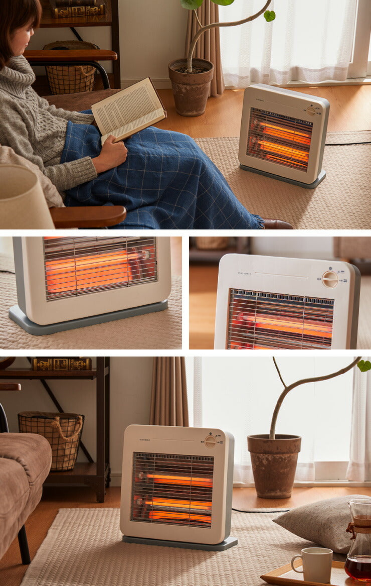 電気 ストーブ 800W 足元 ヒーター 400W 安全 シンプル ホワイト 薄型 軽量 冬 省エネ エコ 小型 コンパクト 転倒 OFF 電源 収納