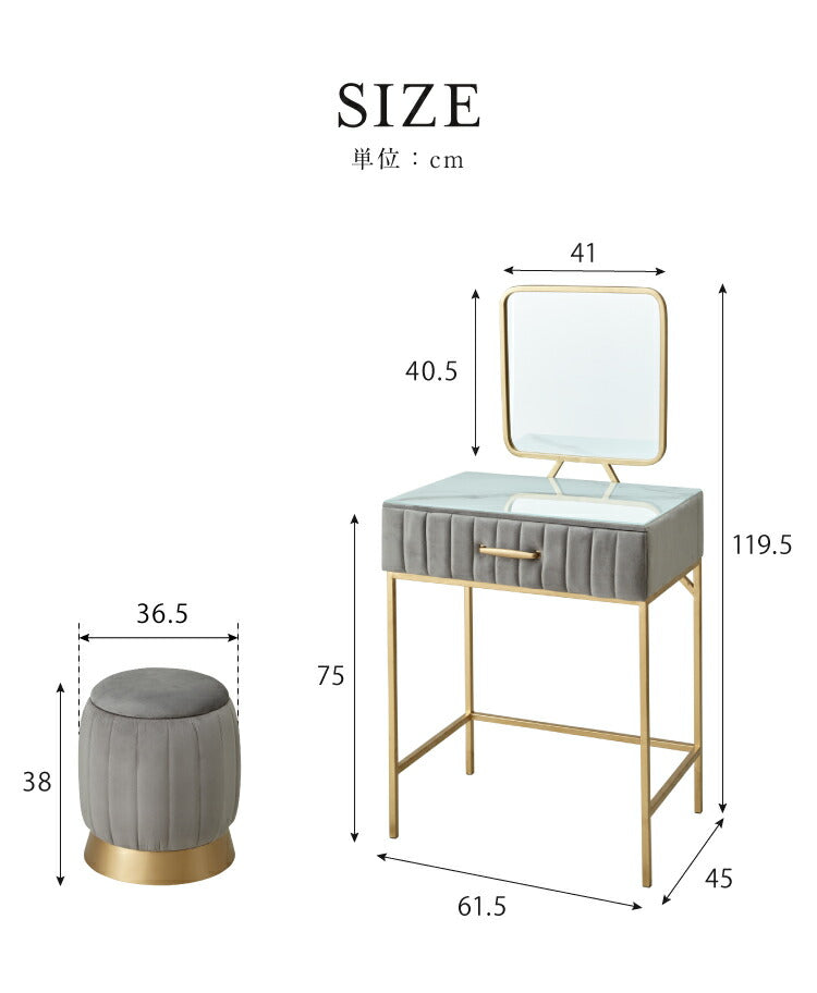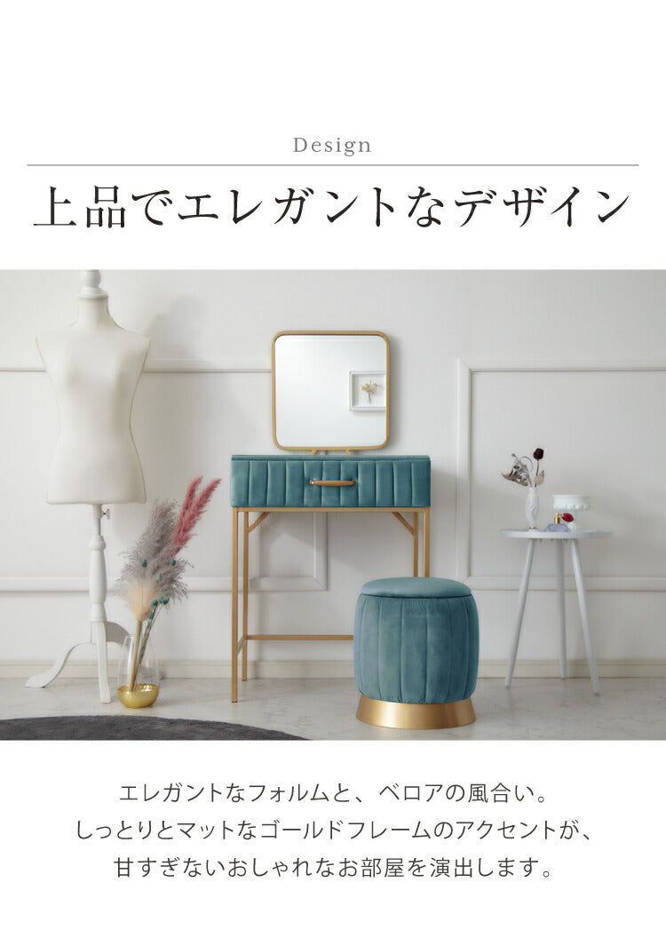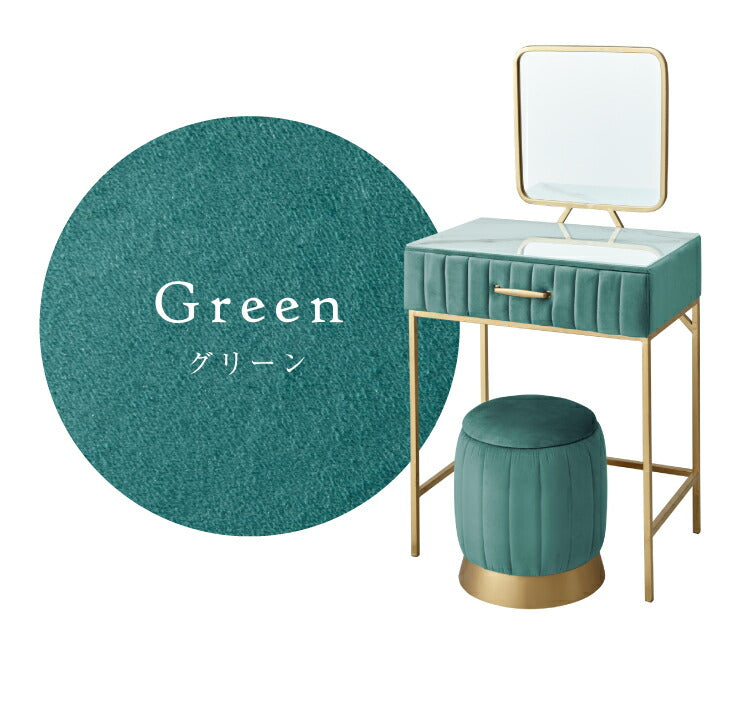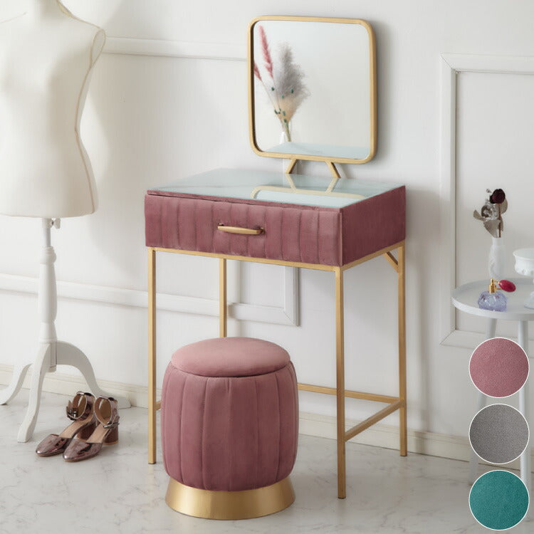 ドレッサー ベロア調 幅60 スクエアタイプ くすみカラー おしゃれ 姫系 かわいい 北欧風 韓国インテリア 収納スツール ベルベット調 鏡台 化粧台 コスメ台 ピンク グリーン グレー(代引不可)
