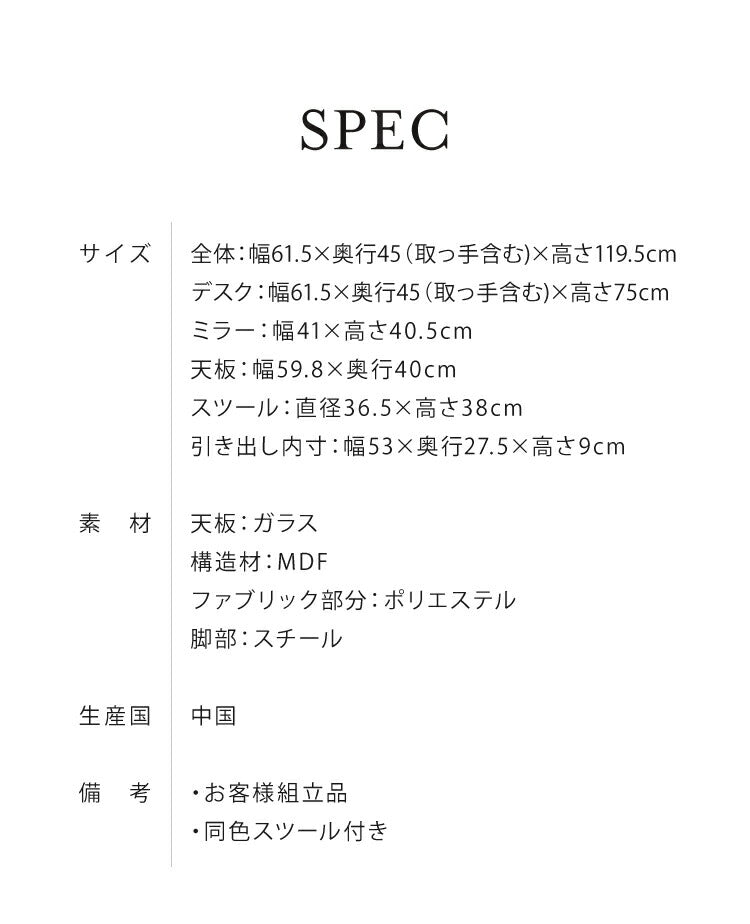 お客様組立商品になります。※デスクとミラーのネジ止めのみ