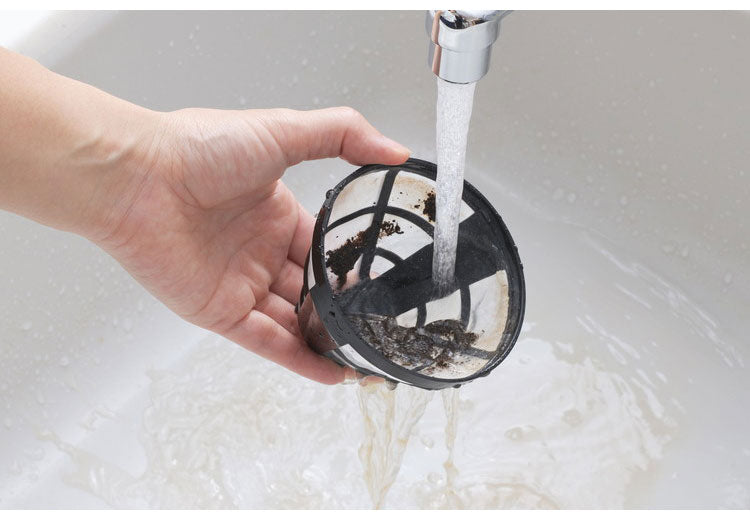 本格的なコーヒーが簡単に楽しめるおしゃれなカラーのコーヒーメーカー。約5人分のコーヒーが一度に抽出できます。ドリップ後そのまま注げるガラスカップ。容量がわかる水位目盛付き。ペーパーフィルターが不要で資源の節約にもなります。