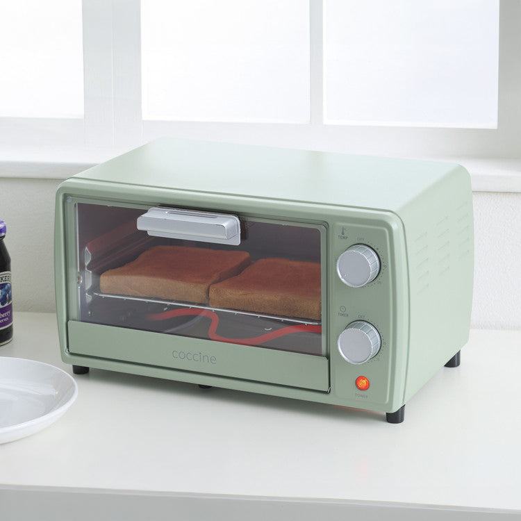 コッチネ オーブントースター9L 温度調節・焼き時間調節機能付き オーブントースター ミニ 1枚 トースト 1人 1枚焼き リベイク 単身 コンパクト 小さい タイマー レトロデザイン(代引不可)