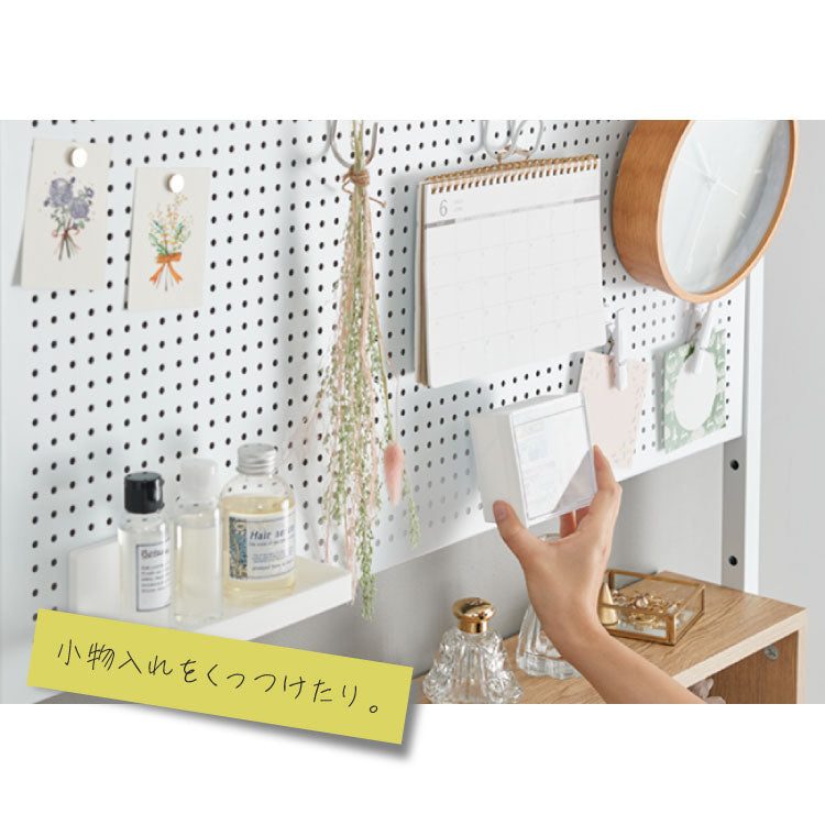 ・有孔ボードなので、フックなどを使って引っ掛け収納もできます。
