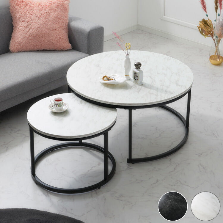 ネストテーブル 大理石調 直径80cm テーブル ローテーブル 2個セット コンパクト センターテーブル コーヒーテーブル リビングテーブル 大理石調 テレワーク