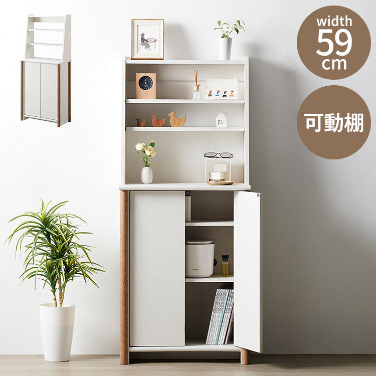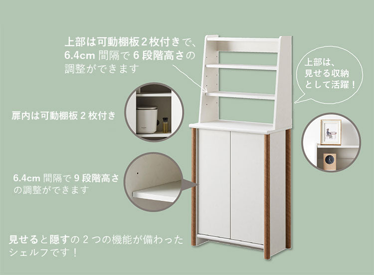 シェルフ 幅59 コンパクト 新生活 ホワイト ナチュラル バイカラー 韓国インテリア 1人暮らし シンプル おしゃれ 収納家具 インテリア家具 ディスプレイ ロータイプ ナチュラル 扉付き 棚 チェスト