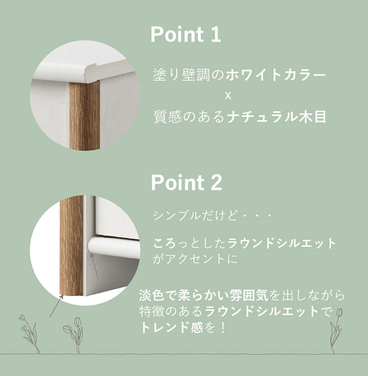 韓国インテリアの丸み、ロースタイル、ホワイト基調の優しい色合いをコンセプトに作りました。 壁紙に近い風合いのホワイトカラーに、アクセントとしてナチュラルカラーの円柱をあしらったデザインです。 ナチュラルテイストのお部屋には無理なく溶け込めるのも特徴です。