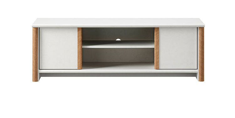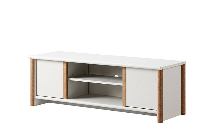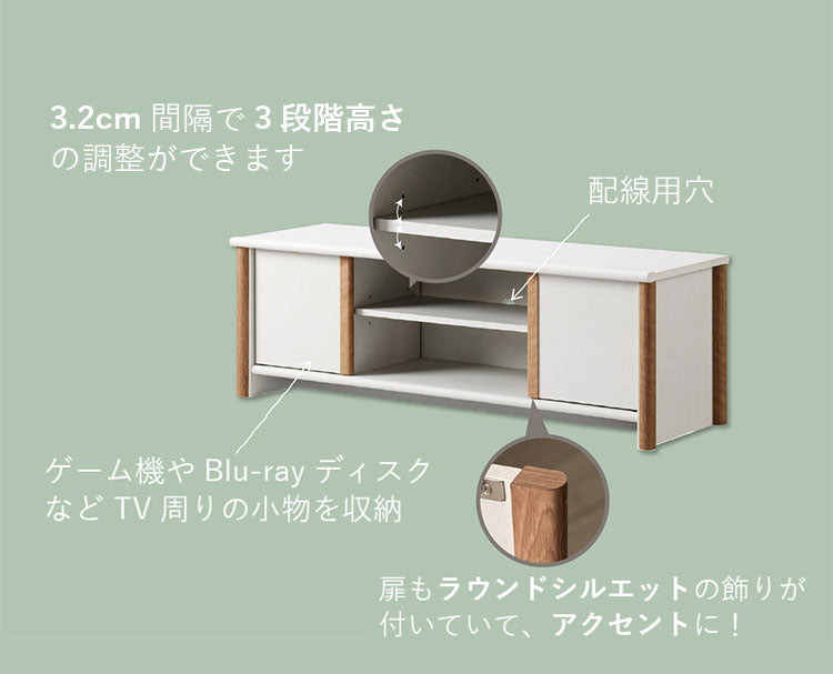 韓国風インテリアを取り入れた、やさしいホワイト基調のロースタイルTVボード。50インチまでのテレビに対応し、ナチュラルな円柱デザインがリビングに温かみをプラスします。背面には配線穴があり、ルーターやゲーム機、縦型HDDもすっきり収納。可動棚は3段階・3.2cmピッチで調整可能。天板耐荷重30kgとしっかり設計されており、機能性とデザイン性を両立させた一台です。ノアンシリーズでお部屋を統一して、韓国風のおしゃれな空間に。