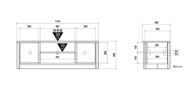 ・配線穴付きでゲーム機やHDDもすっきり収納