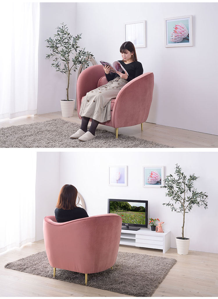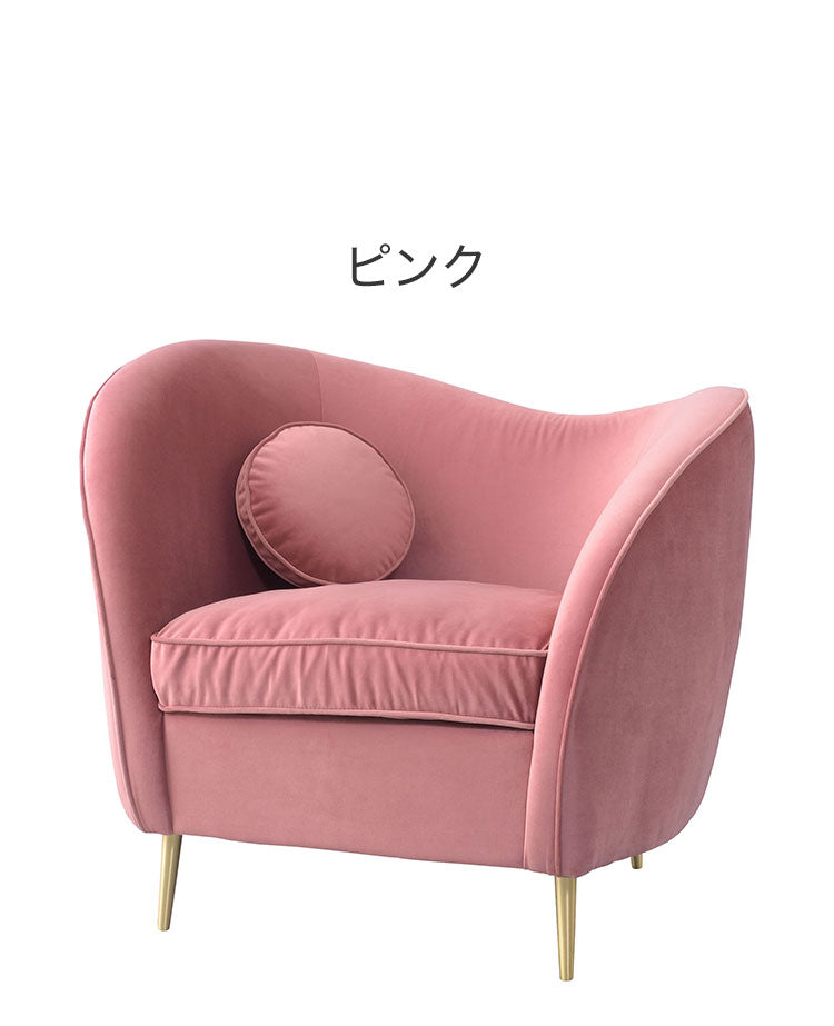 ソファ ソファー 1人掛け 1人掛けソファー アーム付き 幅98cm ファブリック 布地 ベロア生地 クッション付き かわいい 高級感 上品 おしゃれ ピンク グレー(代引不可)