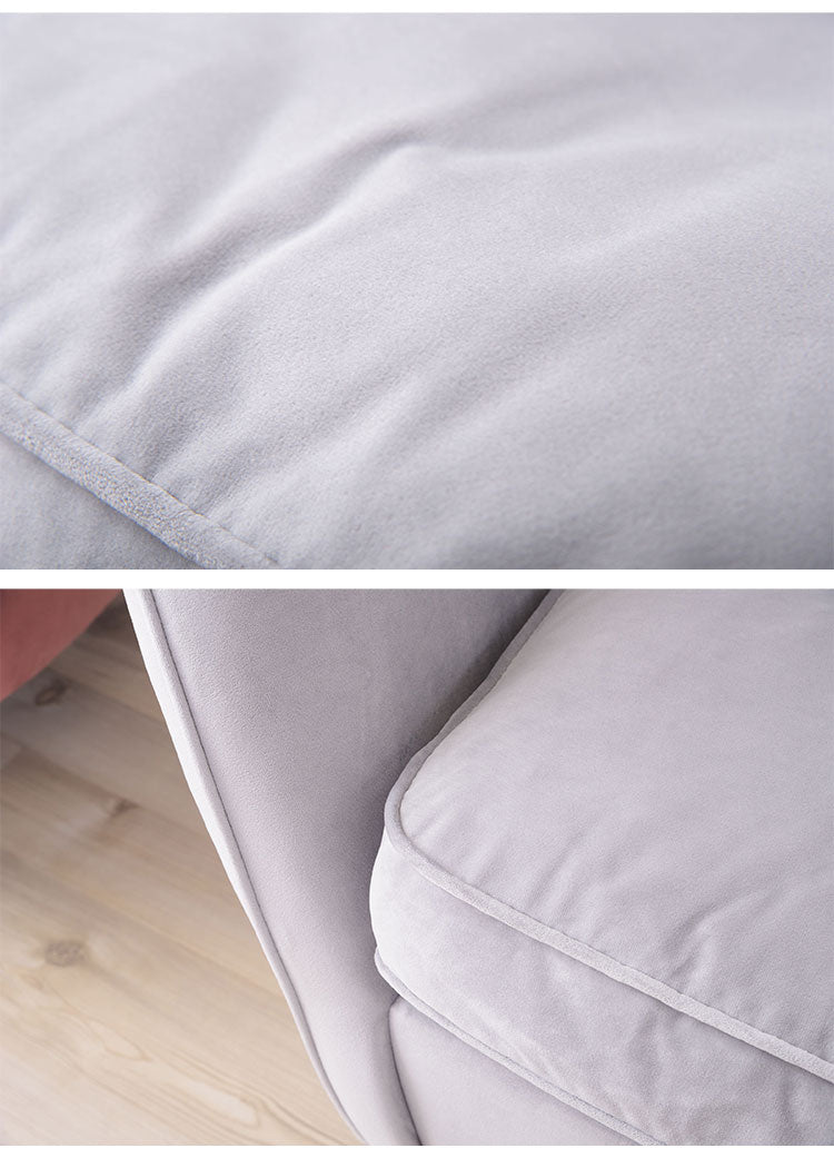 ベロア生地を使用しているので手触りが良く、見る角度によって色のグラデーションが楽しめる表情豊かなソファです。