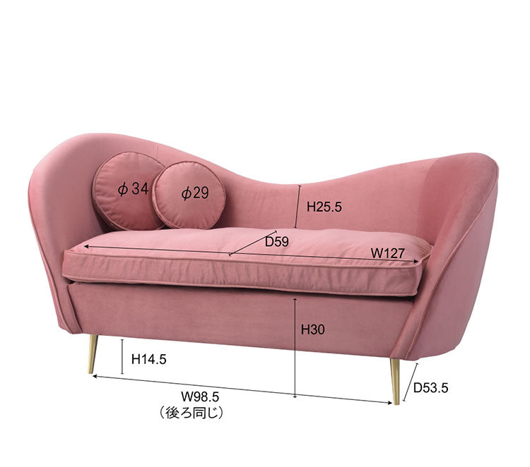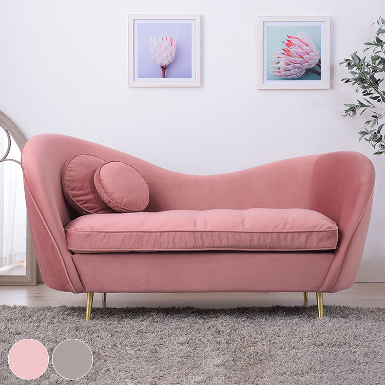 ソファ ソファー 2人掛け 2人掛けソファー アーム付き 幅162cm ファブリック 布地 ベロア生地 クッション付き かわいい 高級感 上品 おしゃれ ピンク グレー(代引不可)
