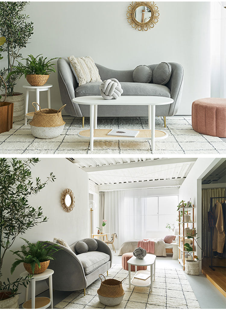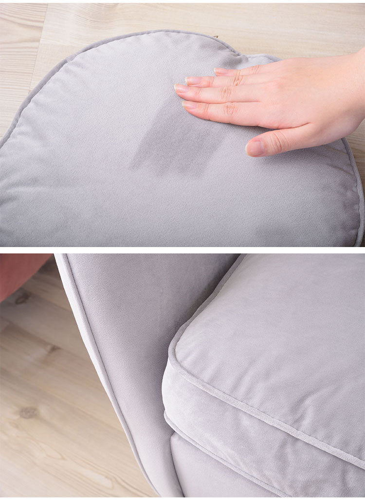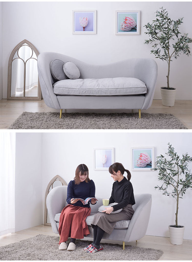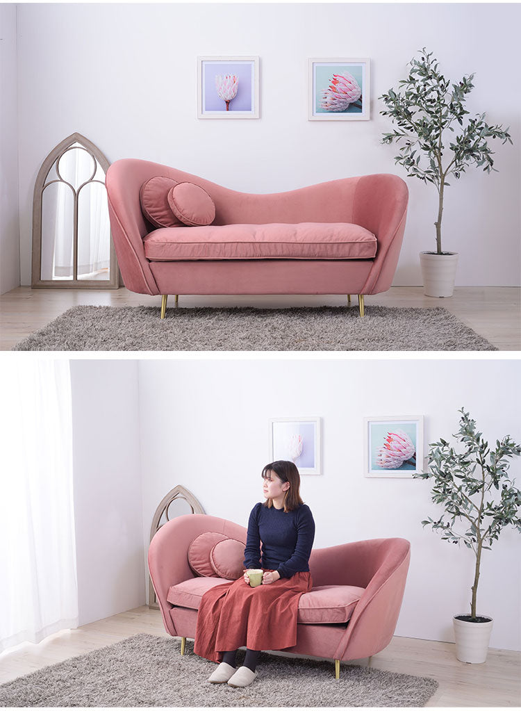 ベロア生地を使用しているので手触りが良く、見る角度によって色のグラデーションが楽しめる表情豊かなソファです。