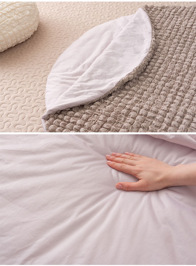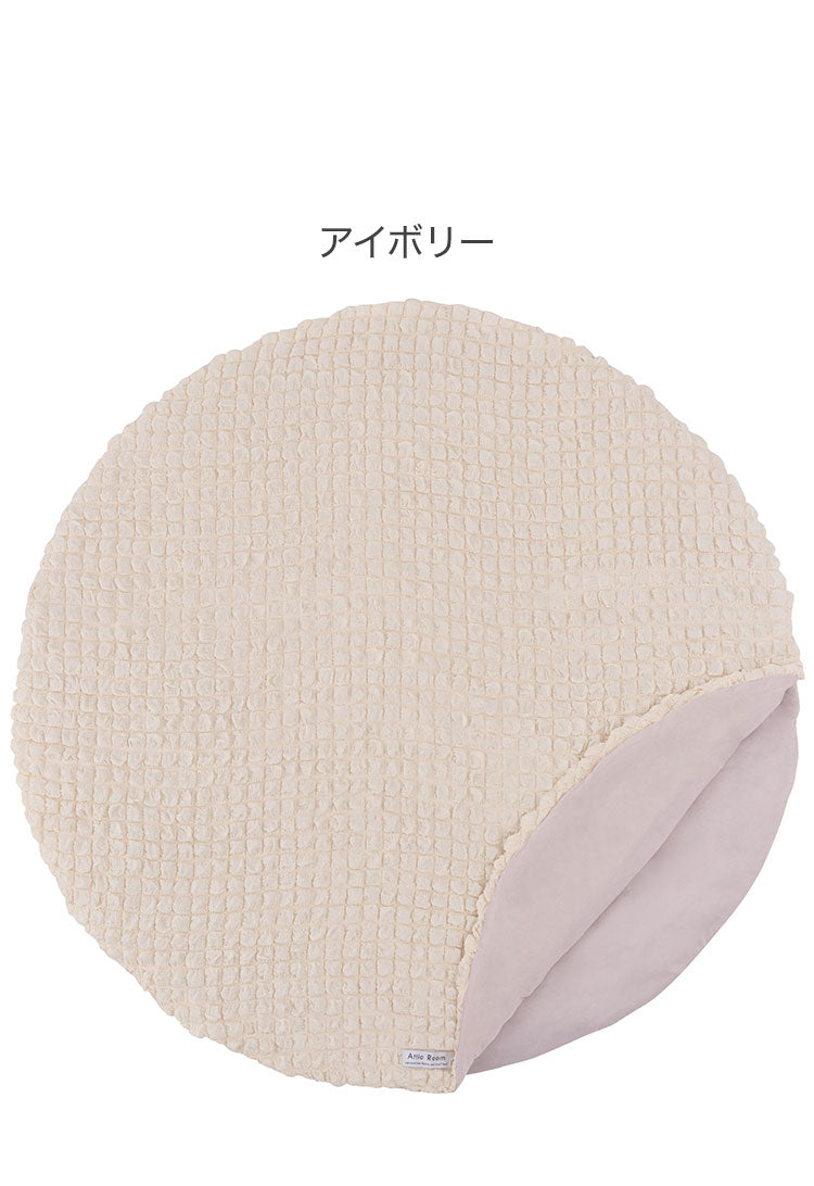 接触冷感 ポップコーン生地 アイボリー 白 白色 クッション かわいい おしゃれ 韓国インテリア 北欧風 北欧 もちもち 夏 ひんやり ニュアンスカラー くすみカラー ラウンド 丸型 丸 円形 直径100cm(代引不可)