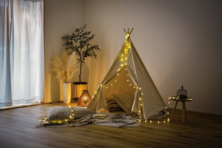 設置するだけで特別な空間を演出するティピーテント。持ち運び可能でさまざまなシーンでお使いいただけます。