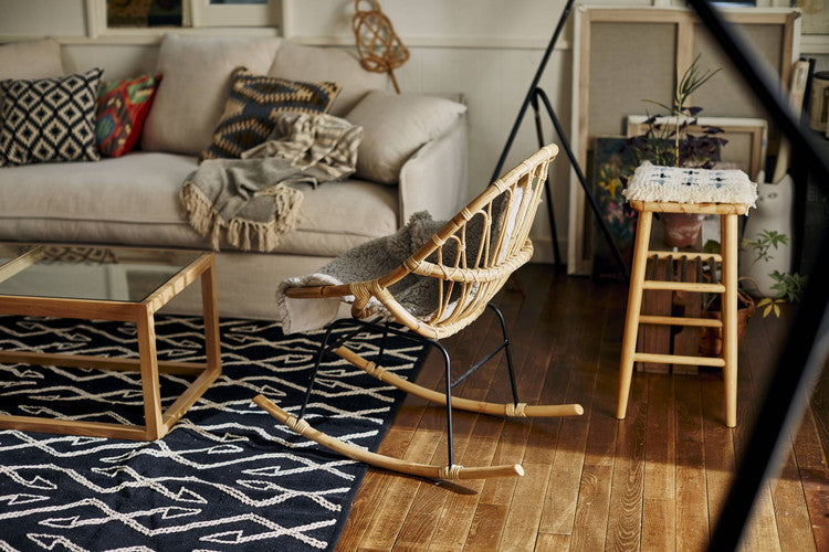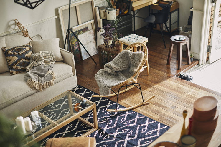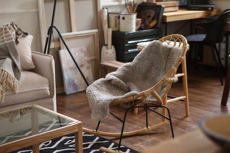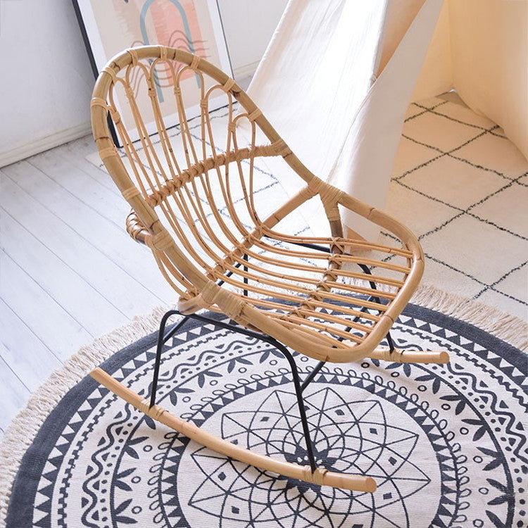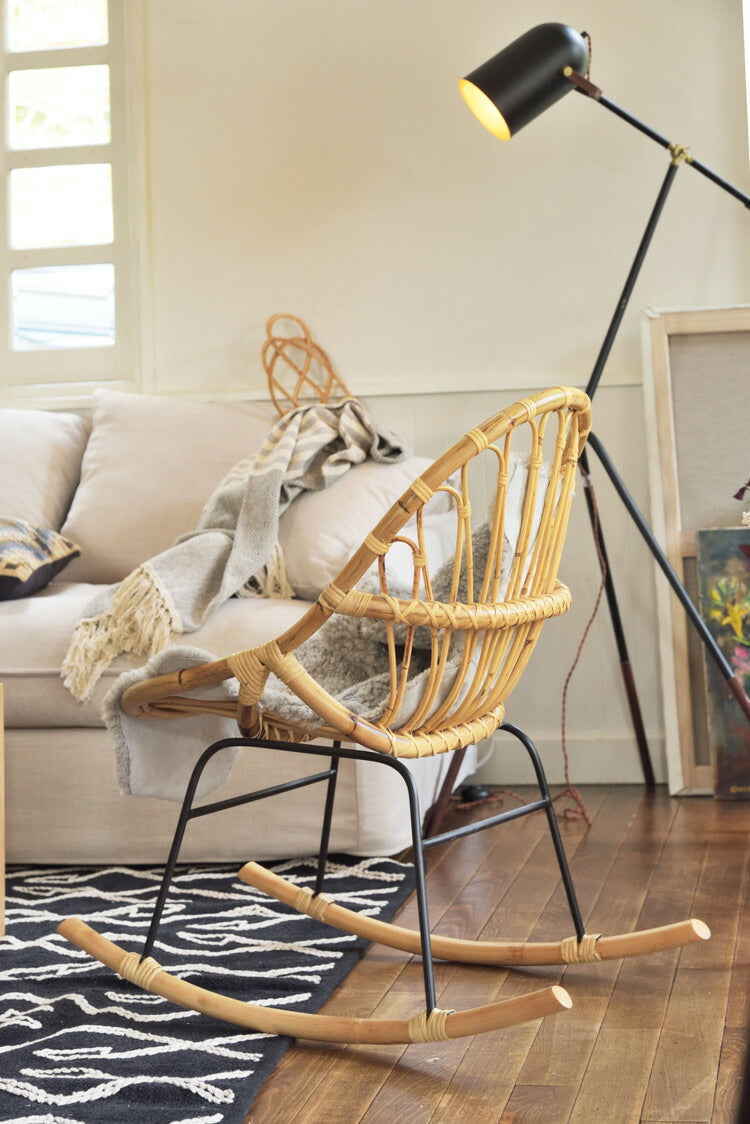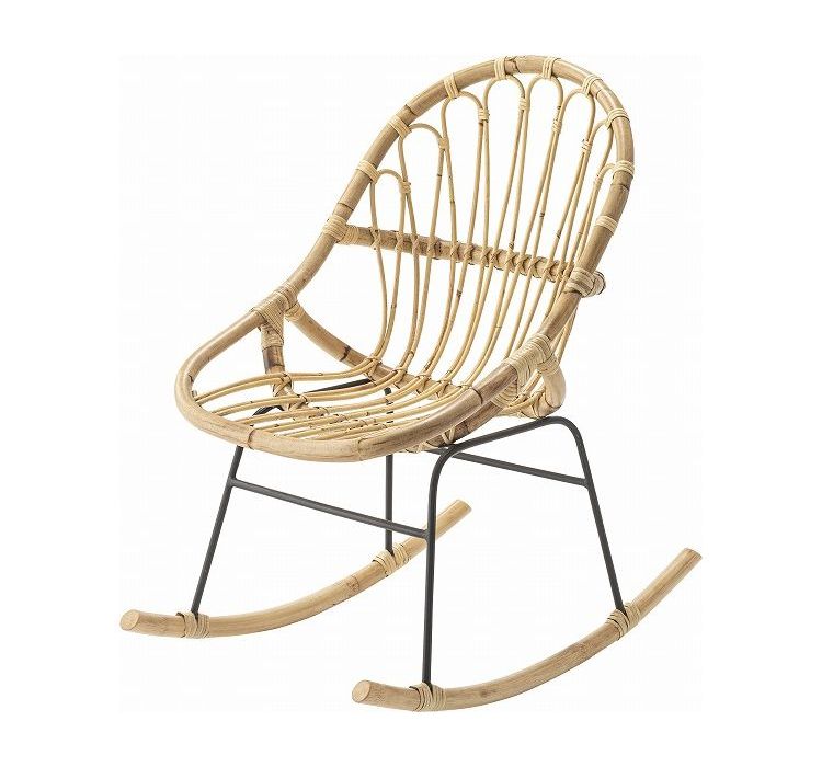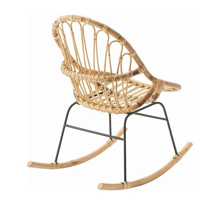 ロッキングチェア ラタン 籐 パーソナルチェア 椅子 イス いす 揺り椅子 リラックスチェア 一人掛け レトロ アジアン リゾート アンティーク スチール脚 アームレス 肘なし 背もたれ(代引不可)