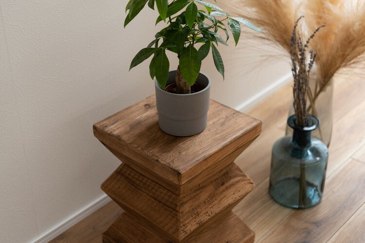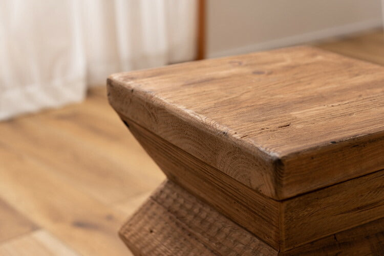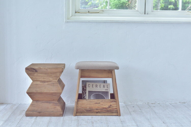 スツール 花台 玄関スツール 小物置き 面取り加工 ベッドサイド ソファサイド 椅子 コンパクト シンプル ナチュラル 古材 パイン材 天然木 ファブリック(代引不可)