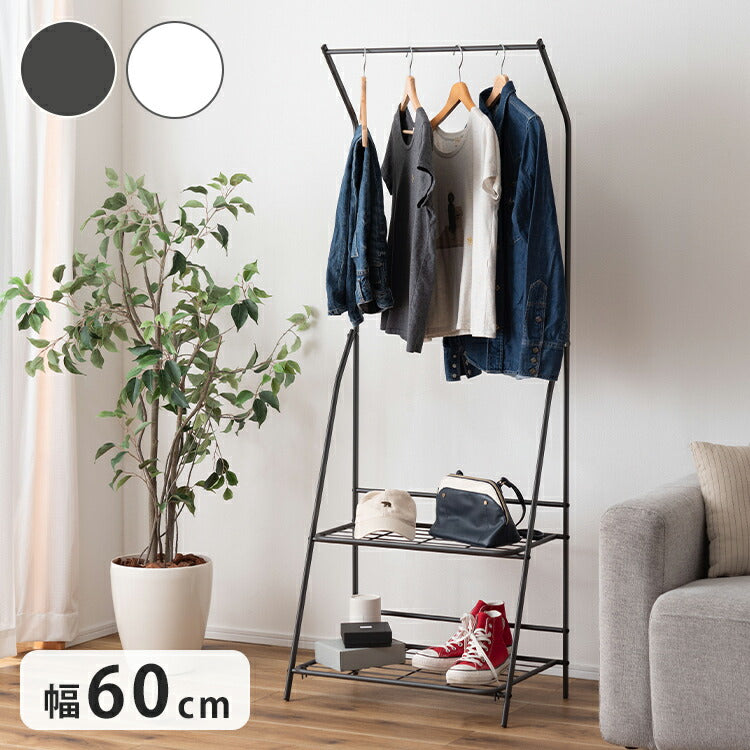 ハンガーラック MIP-58 東谷 部屋干し スリム 棚板付き 2段 コンパクト 幅60cm 省スペース 薄型 スチール 玄関 リビング 洋服掛け 衣類収納 ホワイト 押し入れ 軽量 推し活 ランドセル(代引不可)