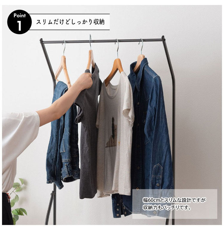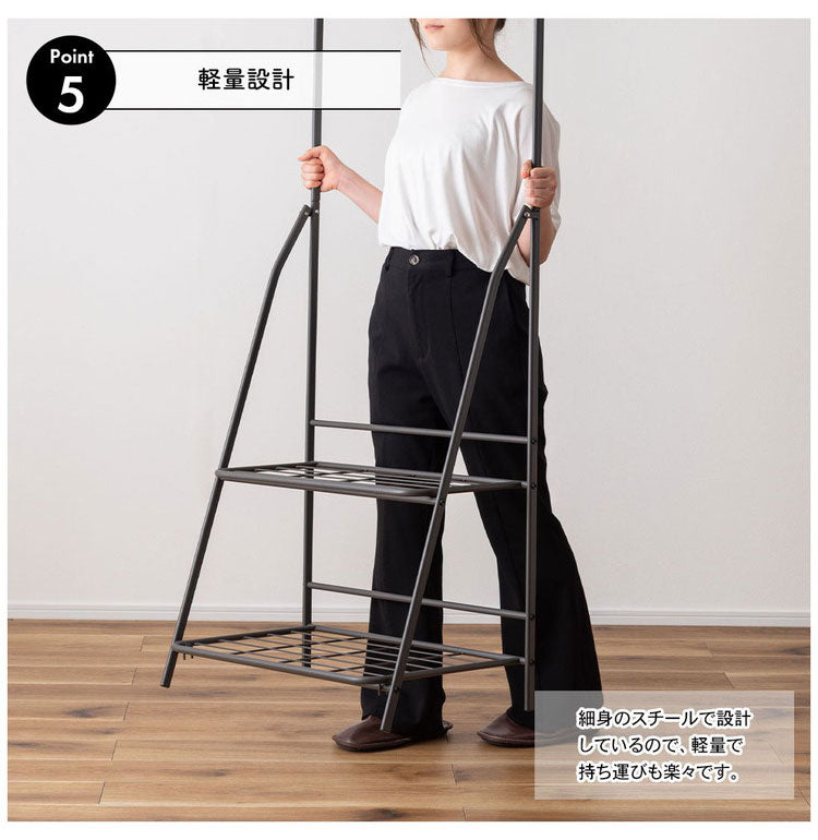 ●スリムで置く場所を選ばない、大容量のフォールディングハンガーラック。