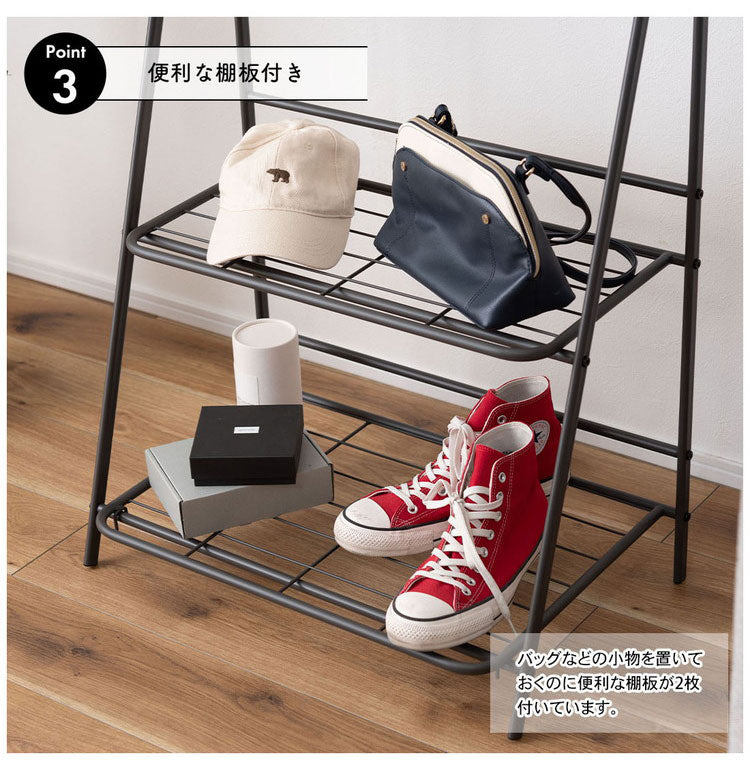 ●本体下部には棚が2つ付いているので、バッグなどの小物を置いていくのに便利。