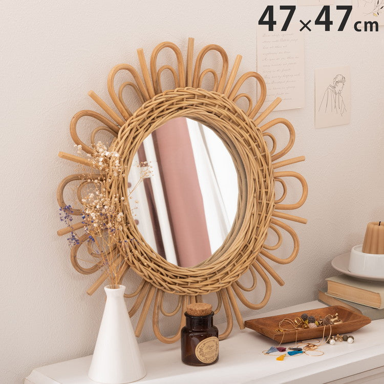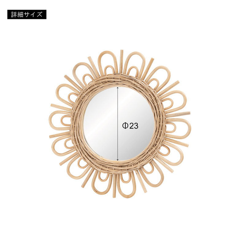 ラタンミラー ミラー 鏡 姿見 壁掛け ウォールミラー スタンド 丸型 円型 ラタン 籐 シンプル おしゃれ ナチュラル インテリア 省スペース 新生活 一人暮らし(代引不可)