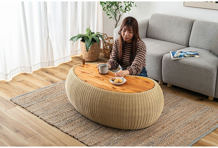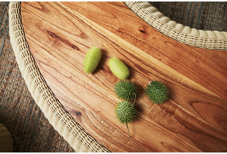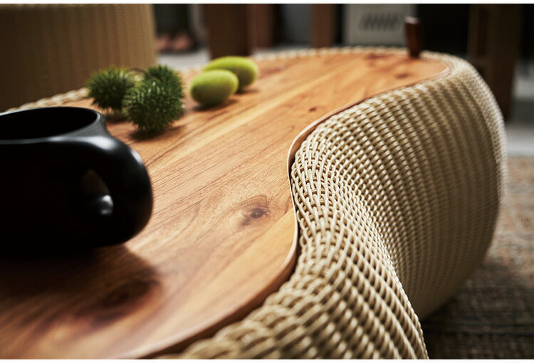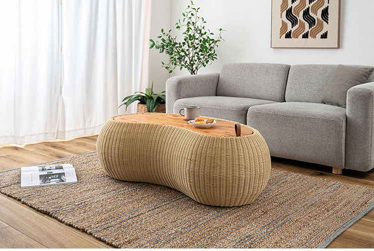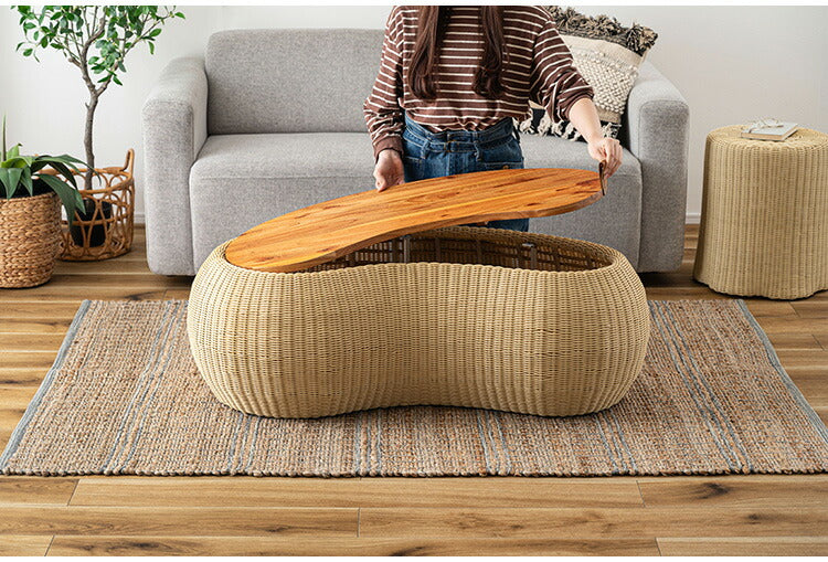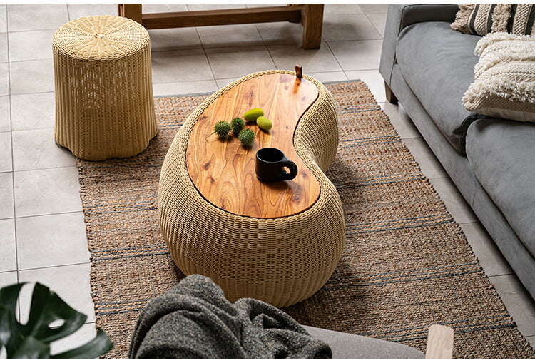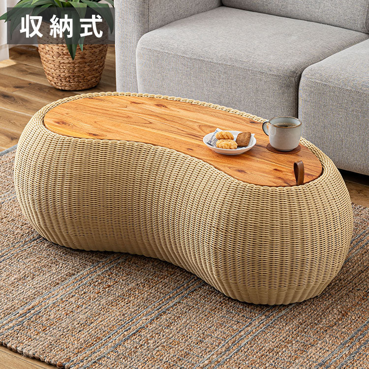 リビングテーブル NRS-6 東谷 センターテーブル テーブル 机 木製 天然木 収納 ビーンズ型 豆型 ラタン 北欧 かわいい おしゃれ 屋外 リビング ダイニング(代引不可)