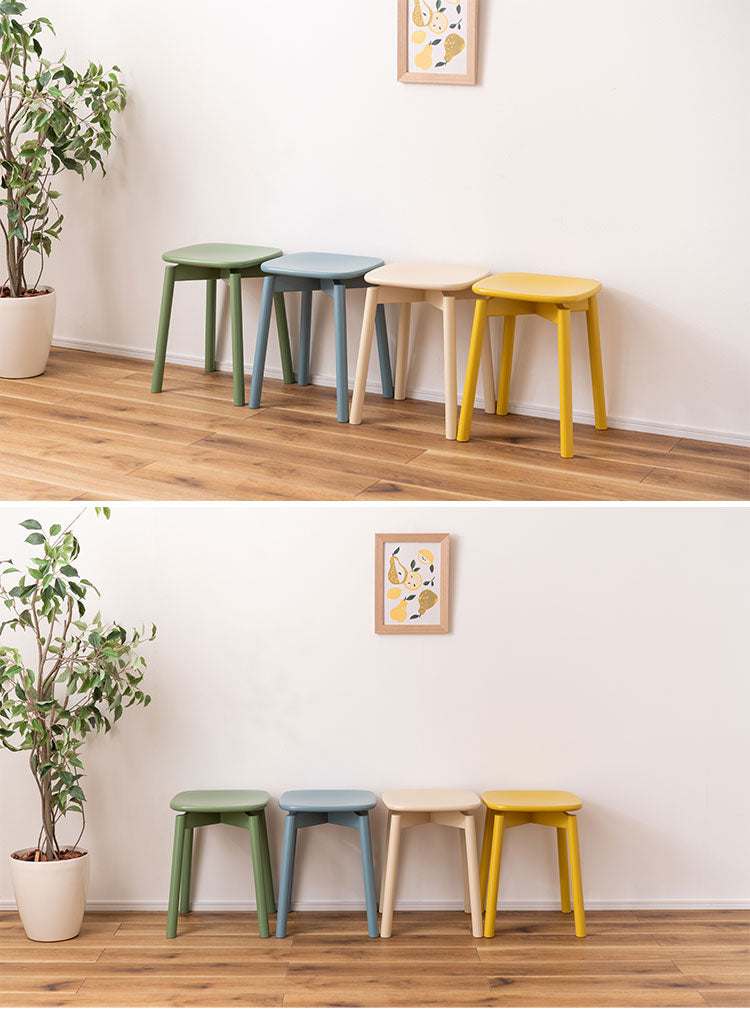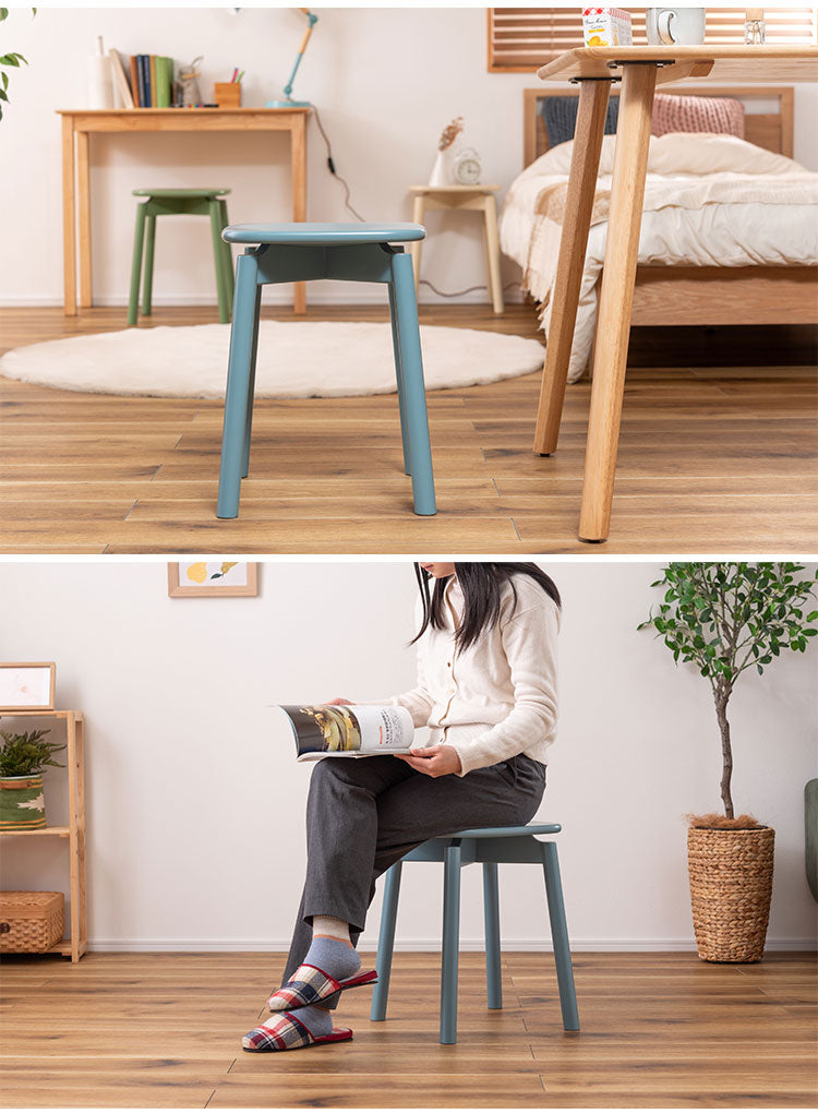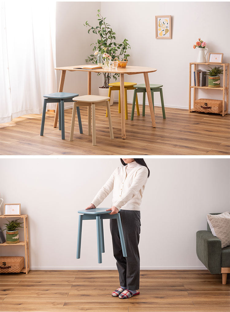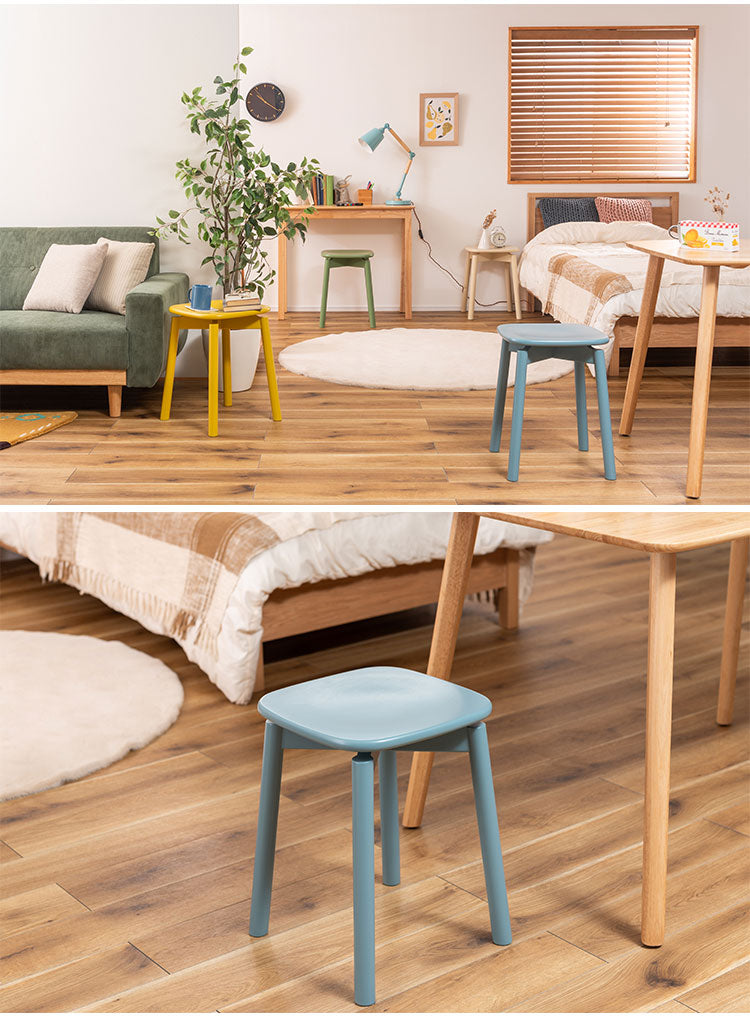 スツール 椅子 イス いす 木製 天然木 コンパクト ブルー 青 コンパクト サイドテーブル ディスプレイ 玄関 デスク シンプル ダイニング かわいい ラッカー塗装 軽量 おしゃれ(代引不可)
