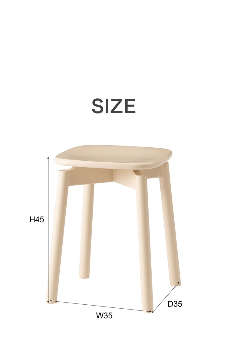 なだらかな曲線が特徴で温かみのある、シンプルかつかわいらしいスツール。?