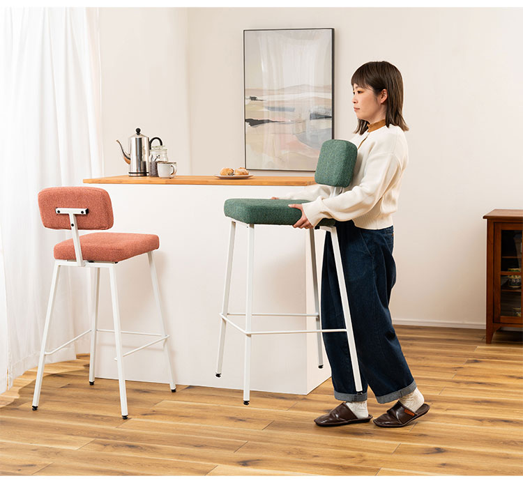 チェア カウンターチェア チェアー 椅子 イス いす 北欧 おしゃれ フットレスト ダイニングチェア レッド ベージュ グリーン かわいい アームレス 肘なし 背もたれ 布地 ファブリック(代引不可)