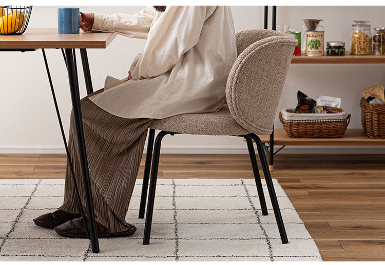 優しく包み込むようなカーブが美しいチェア 大きな背もたれのフォルムが特徴的なチェア。 程よいクッション性なのでゆったりと身体を預け、リラックスして長時間座っても疲れにくい仕様に仕上げました。落ち着いたカラーリングがお部屋になじみ、品の良い空間を演出します。
